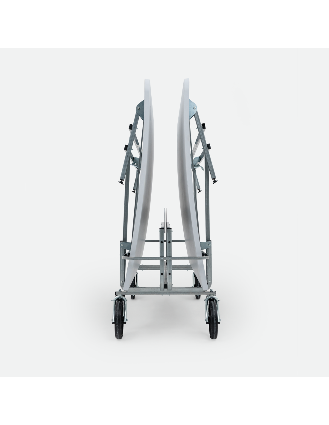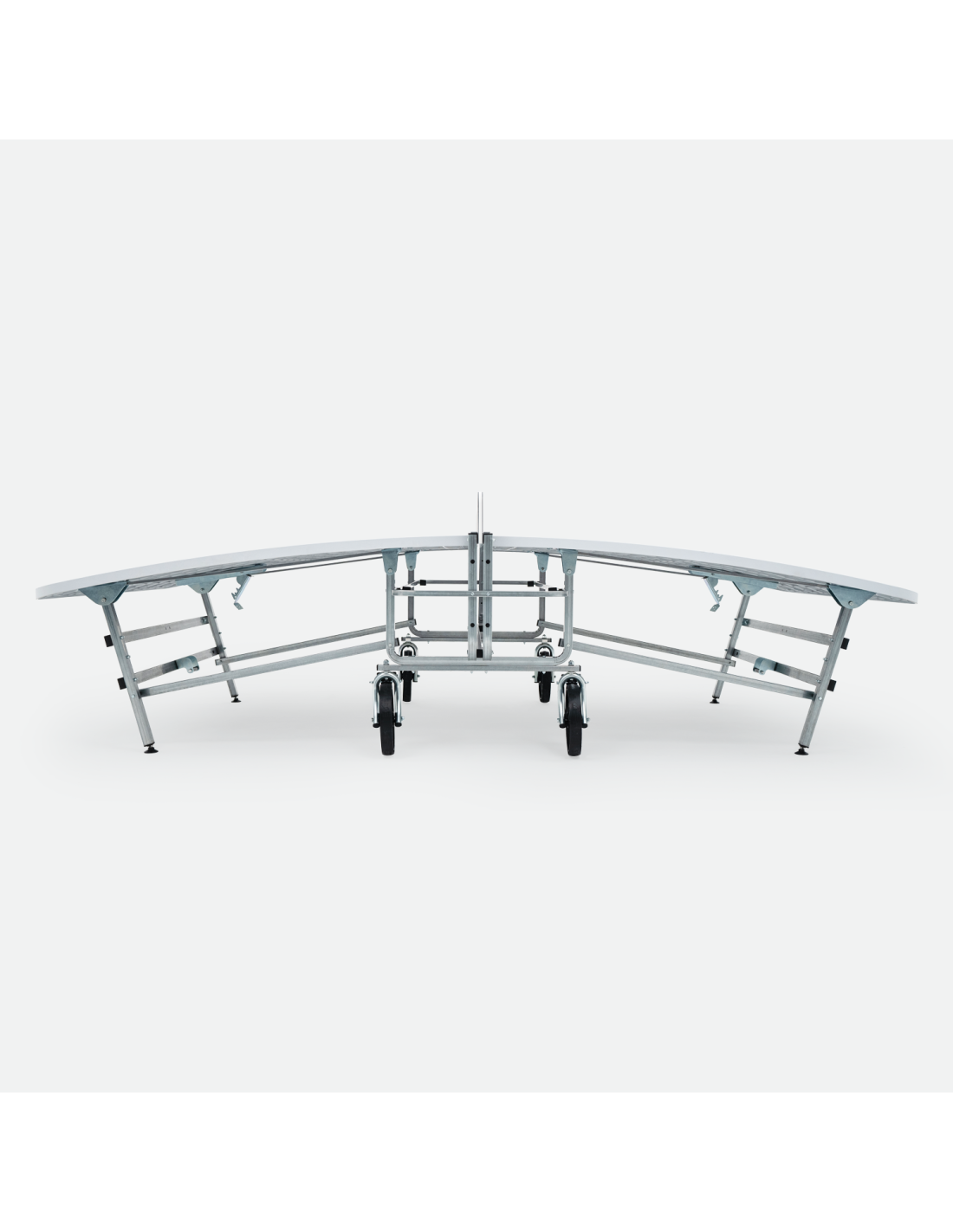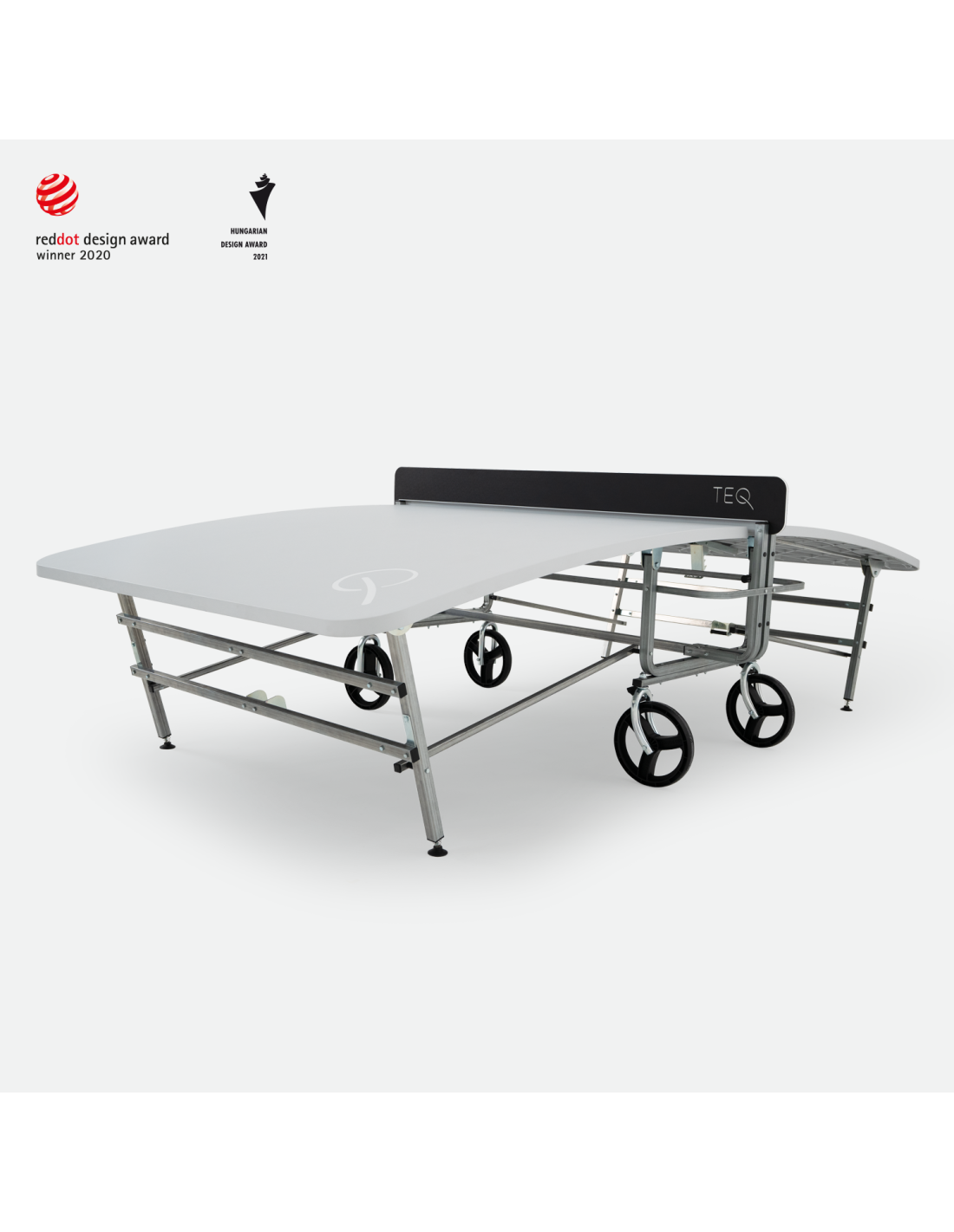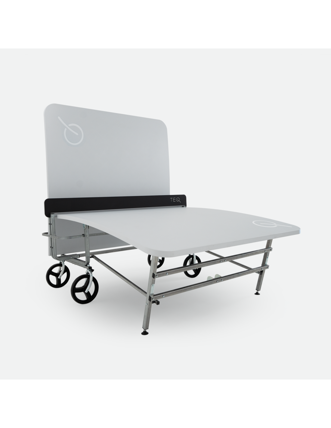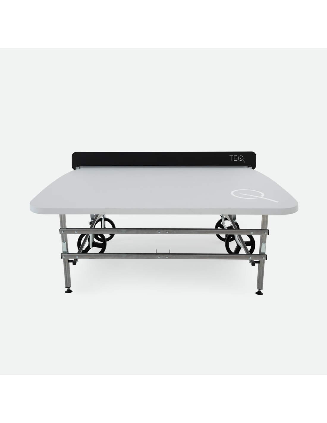 TEQ transportable. Se puede plegar para su almacenamiento, ocupando un espacio mínimo y se transporta fácilmente gracias a sus ruedas bloqueables. Tablero poliéster reforzado con fibra de vidrio con acabado mate. Estructura de patas de acero con revestimiento anticorrosivo. Red polietileno de alta densidad (HDPE).