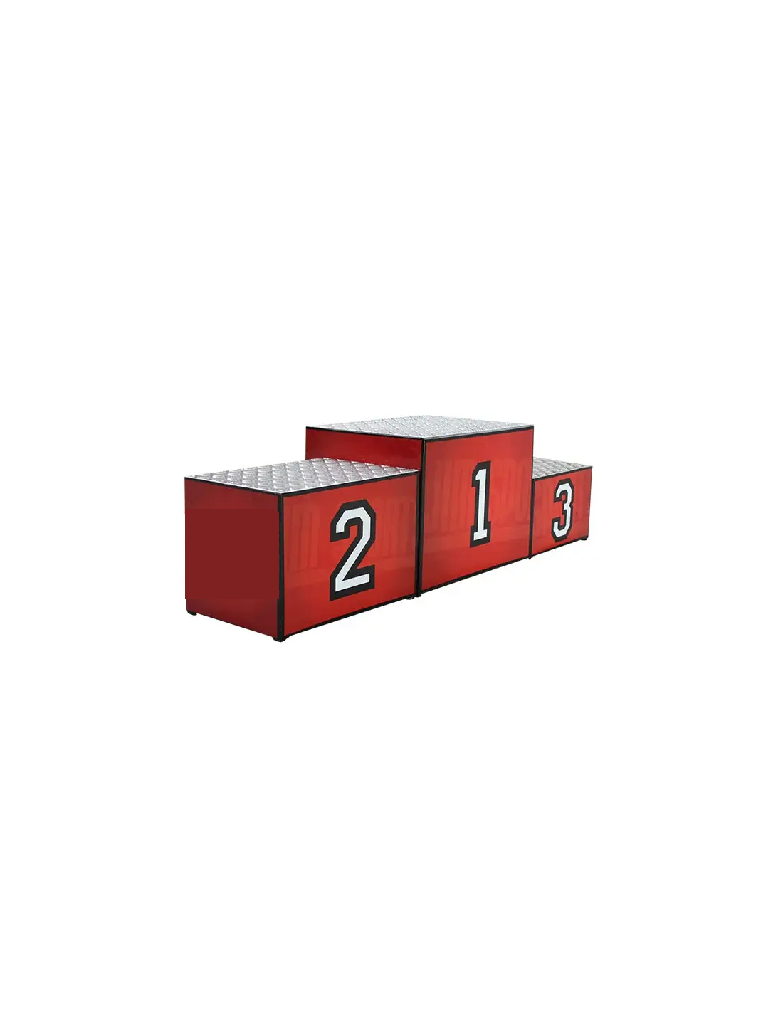 Fabricada en estructura metálica con chapa superior antideslizante en aluminio. Provisto también de chapa metálica frontolateral con la posibilidad de personalizarlo.