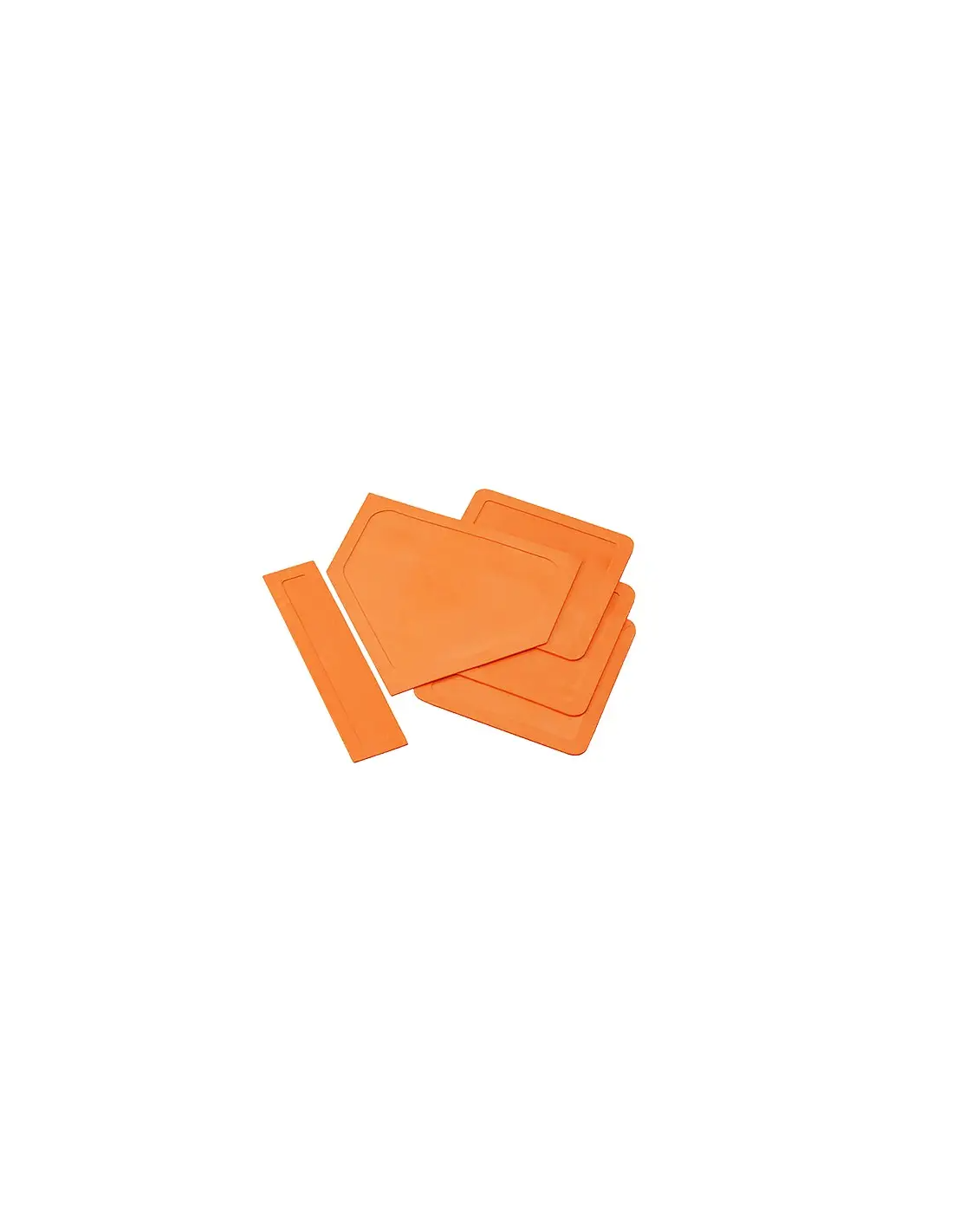 Compuesto de 3 bases de caucho. Gran flexibilidad.1 home base y línea posición bateador. Color naranja.