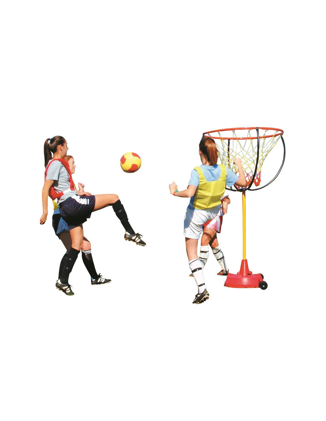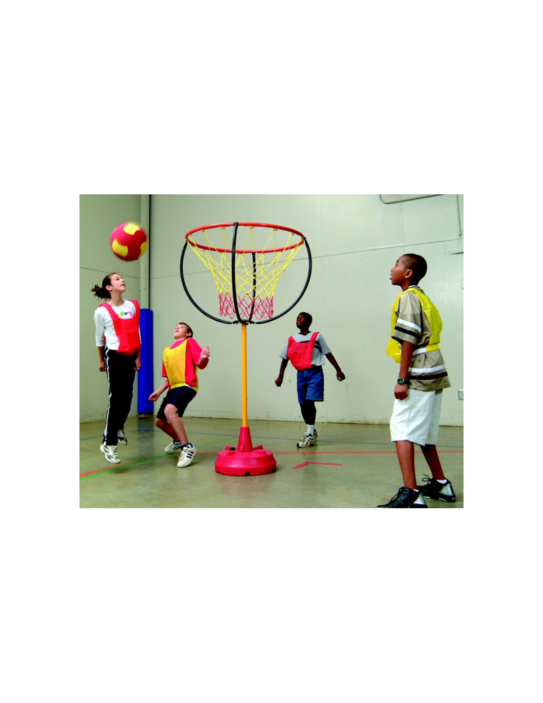 Con el poste colocado en su altura más baja, la portería Foot-Basket se colocará exactamente a la altura oficial de 2 m para jugar el Foot-Basket Game. Ø del aro: 1 m. Este producto es compatible con la base multideporte (0471) y los postes multideporte (0473/0475)