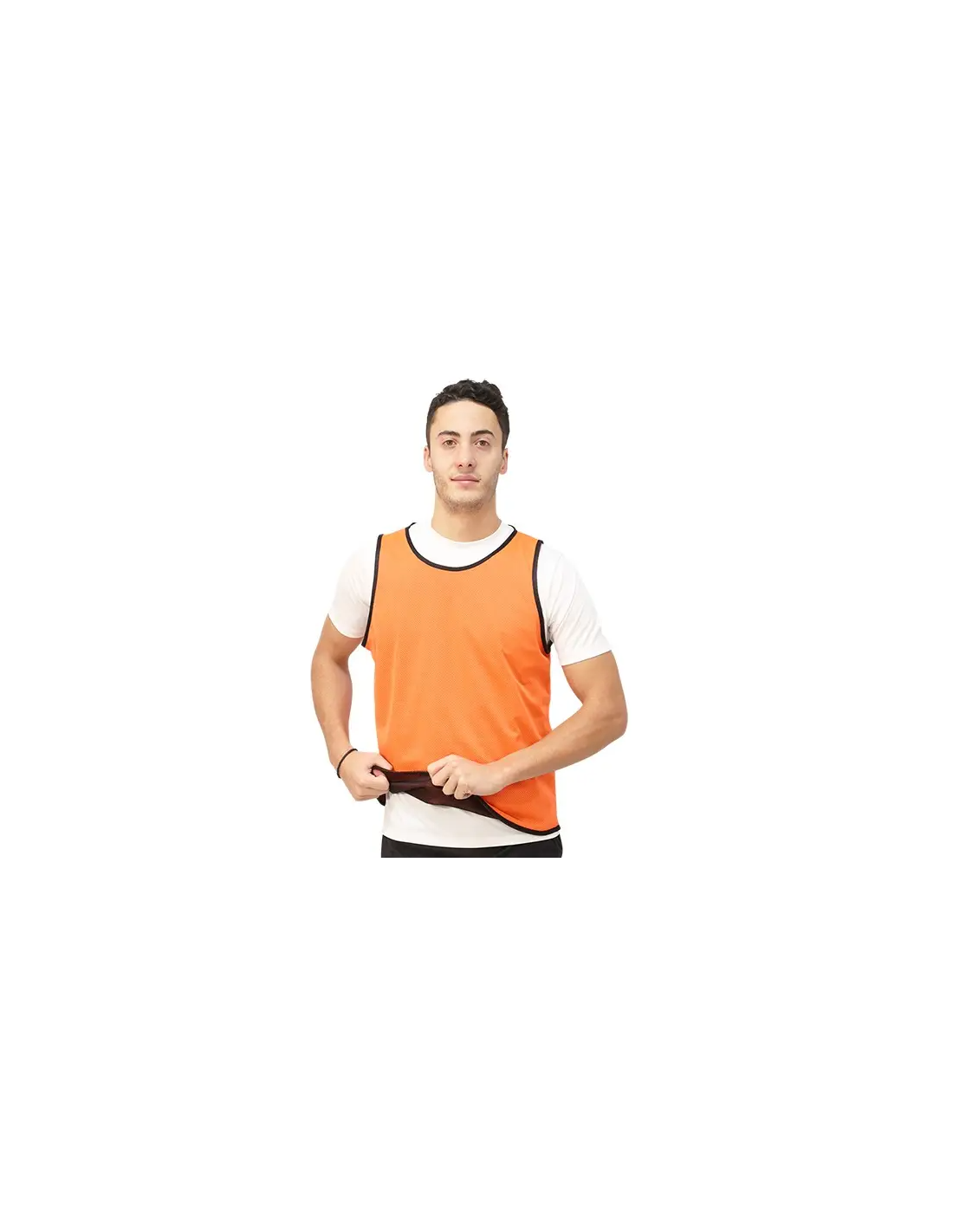 Peto cerrado y microperforado. Peto entrenamientos y multiusos. Reversible a 2 colores. Diferentes colores: azul-rojo, naranja-negro.