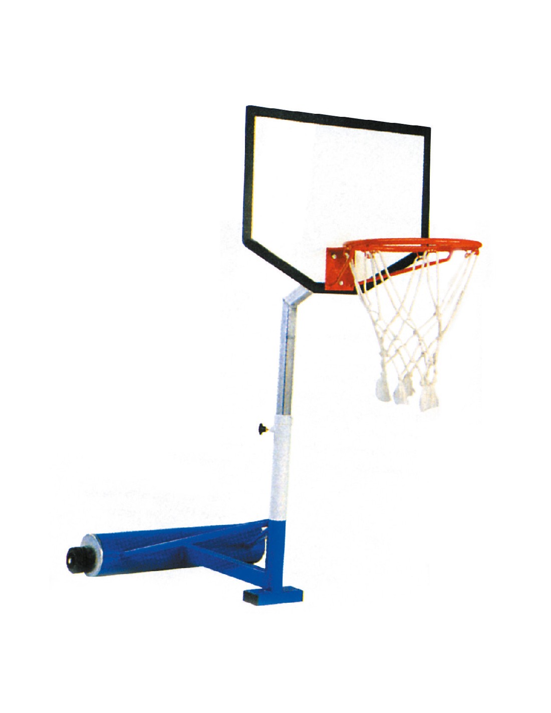Canasta para básketpool graduable en altura de 110 a 160cm, ideal para colocar en el borde de la piscina. Base con contrapesa provista de ruedas para facilitar su traslado.