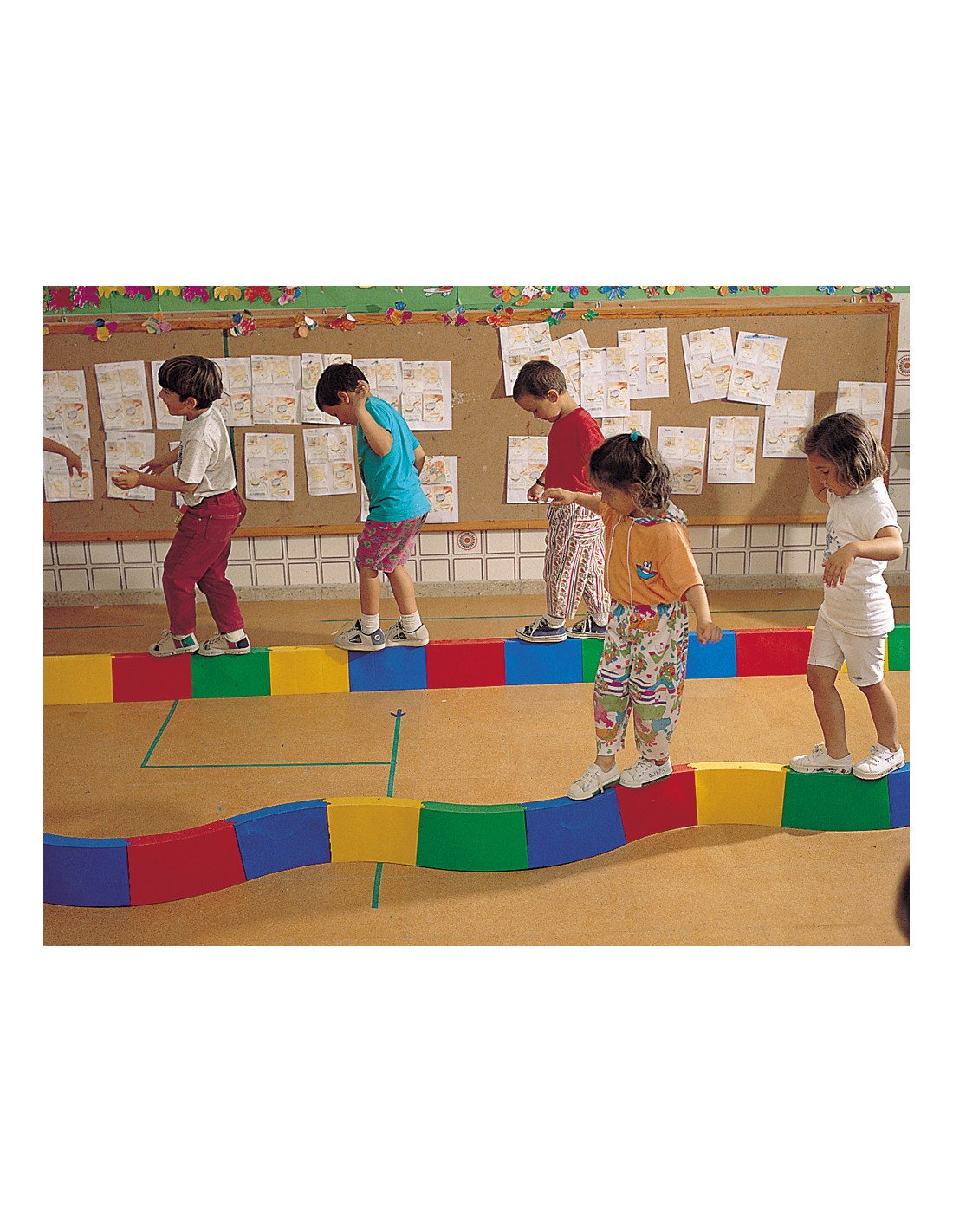 Caja de 10 módulos. 30x18 cm. Pasillo recto o curvo para trabajar con los alumnos situaciones de equilibrio, desplazamientos sobre superficies elevadas, sensaciones plantares, para delimitar espacios, etc.