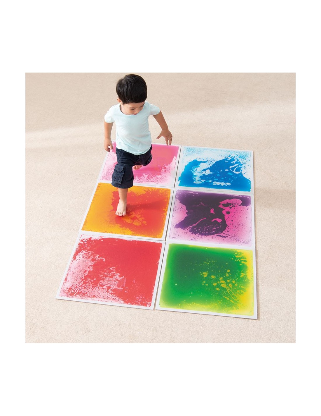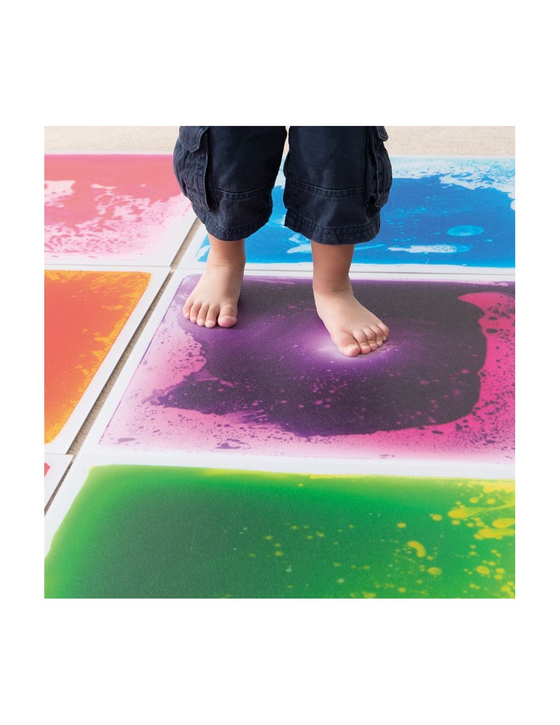 Suelo compuesto por baldosas rellenas de líquido sensorial que cambian de color al pisarlas, produciendo una sensación muy agradable y estimulando el desarrollo sensorial y perceptual. Perfecto para centros infantiles, habitaciones sensoriales, hogares… etc.