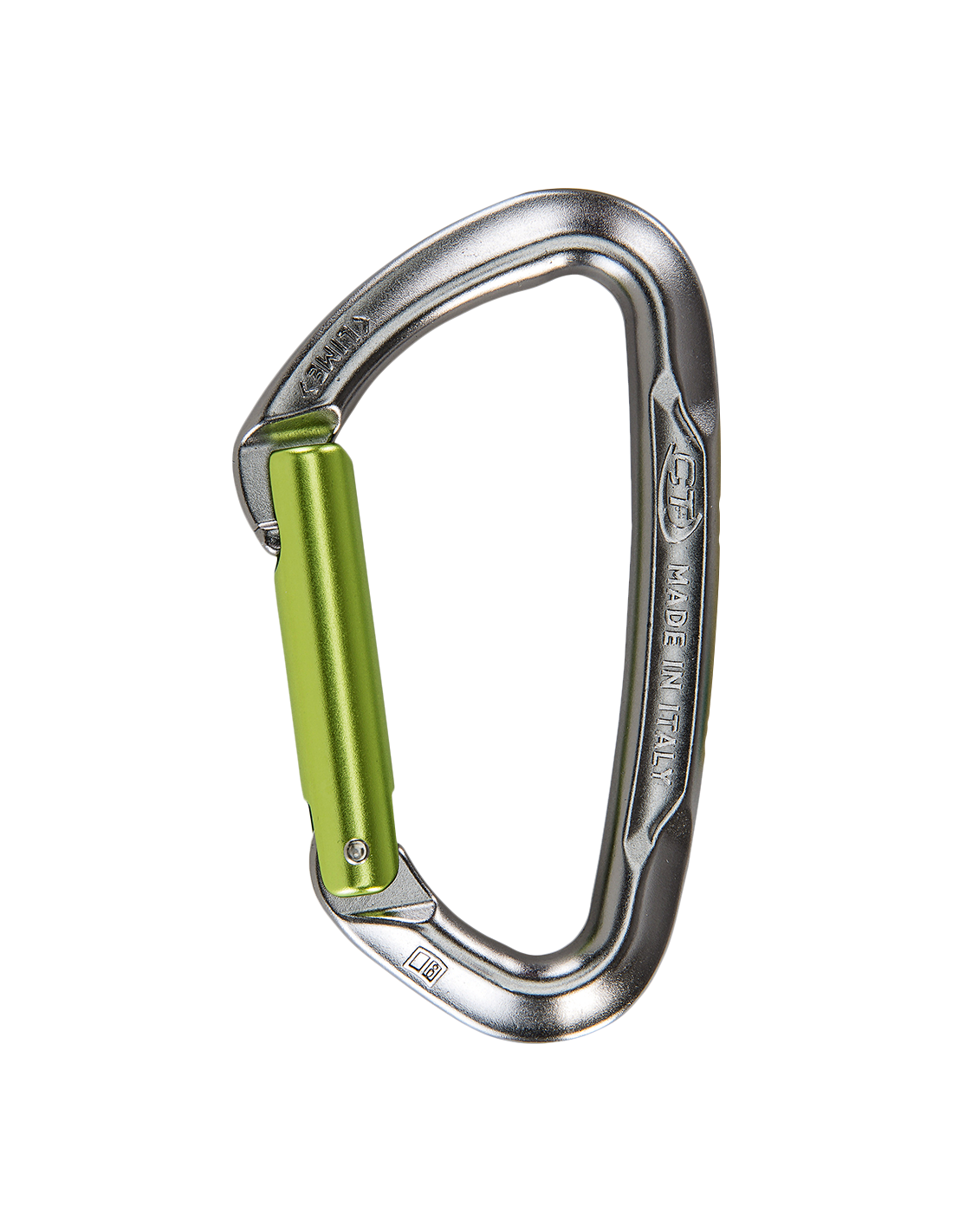 Mosquetón compacto y clásico de aleación ligera forjado en caliente con gatillo recto, diseñado para alpinismo y escalada deportiva en general.