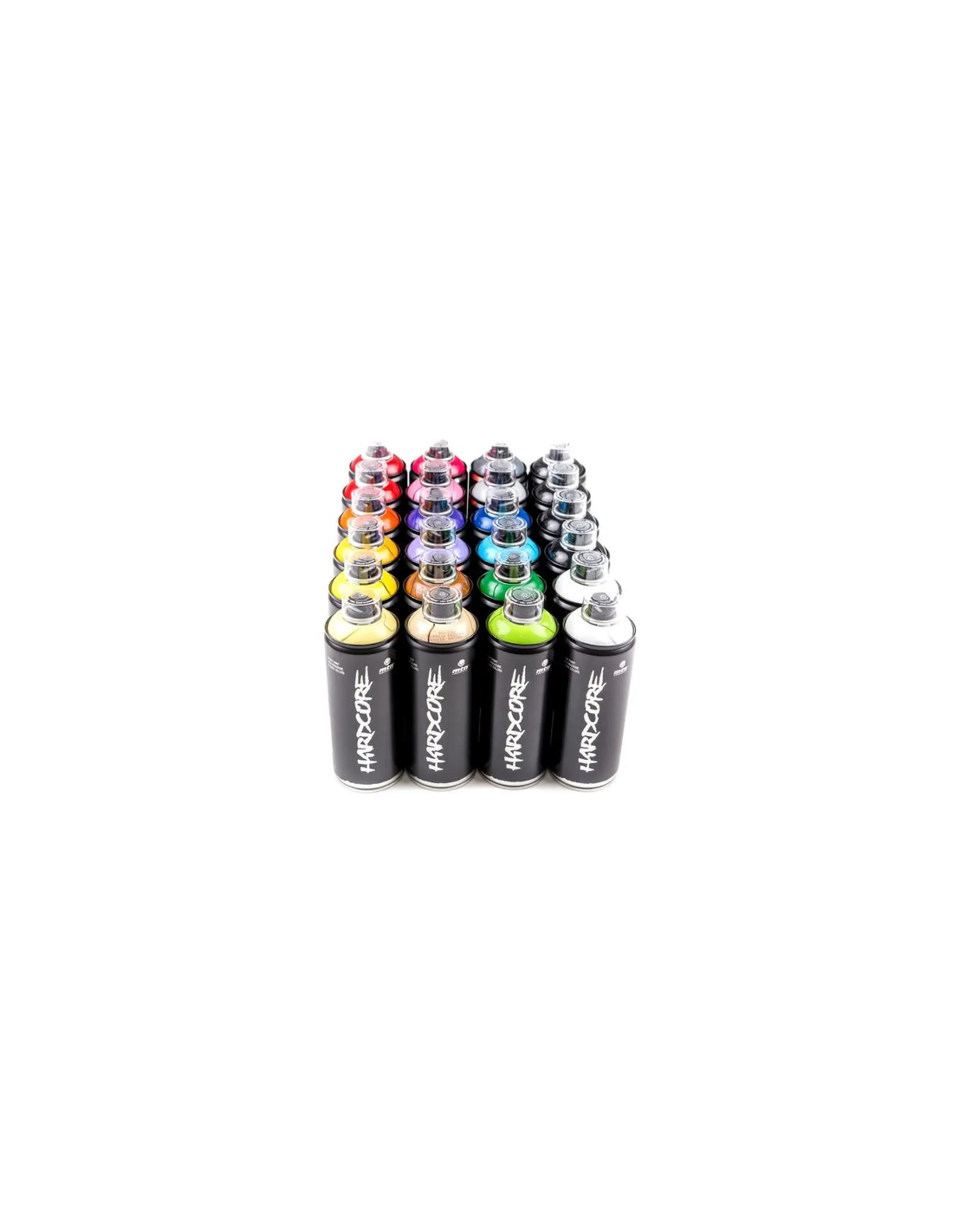 Color elevado a la enésima potencia. Garantiza un disparo homogéneo hasta el final. Herramienta por excelencia en el mundo del graffiti, su rápido secado, buen endurecimiento y durabilidad del color hacen que este spray sea además un producto válido para usos domésticos, industriales o artísticos en los que se requieran las propiedades de una pintura de alta calidad. Agita el aerosol enérgicamente hasta escuchar el ruido del mezclador. Pulveriza sobre la superficie deseada, limpiada previamente. Invierte el aerosol y pulveriza hasta que deje de salir pintura, así evitarás la obstrucción del difusor y podrás volverlo a utilizar. El Hardcore permite realizar trazos con un ancho variable que va desde 2 cm (Pro Cap) hasta los 15 cm (con el Hardcore Fat). La práctica te ayudará a incrementar esta diferencia.