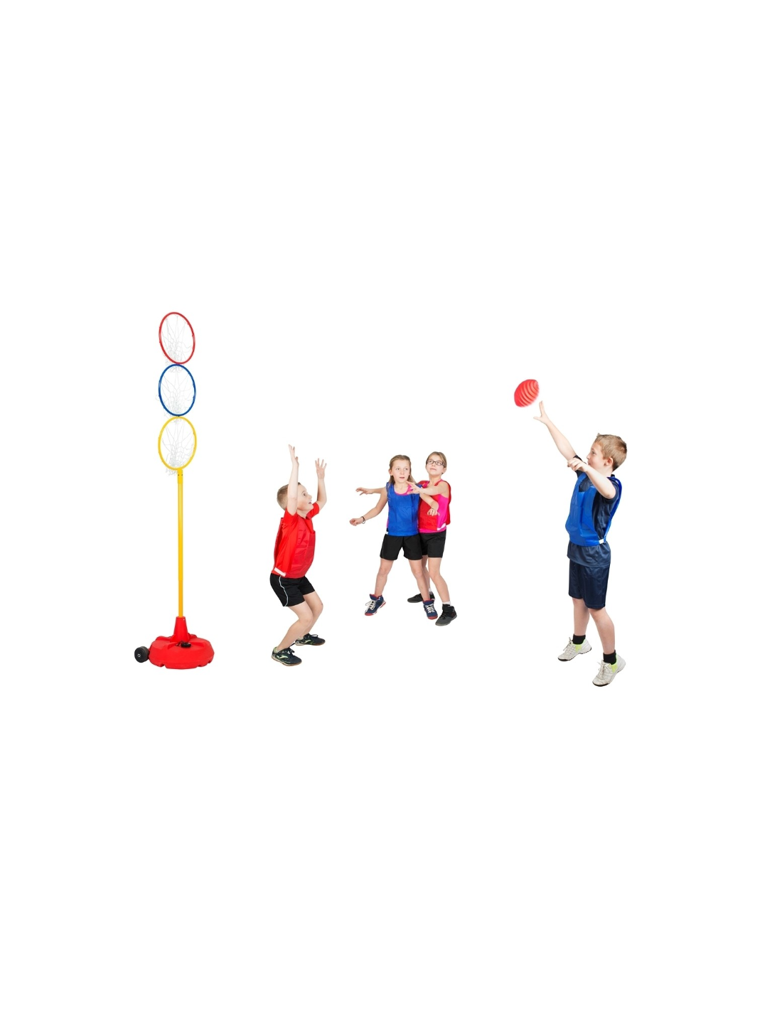 Esta portería ha sido diseñada específicamente para nuestro nuevo deporte Cardiogoal pero también se puede utilizar para otros juegos de lanzamiento. Cardiogoal es un nuevo deporte de equipo que enfrenta a dos equipos mixtos de 6 jugadores: 4 jugadores en el campo y 2 suplentes que entran y salen libremente. El juego consiste en pasar la pelota por uno de los tres círculos de colores (amarillo-azul-rojo) colocados verticalmente a una altura total de 3 metros. Cada color de anillo corresponde a un número de puntos (rojo: 15 puntos, azul: 10 puntos, amarillo: 5 puntos). El equipo con más puntos gana el juego. Este producto es compatible con la base multideporte (0471) y los postes multideporte (0473/0475).