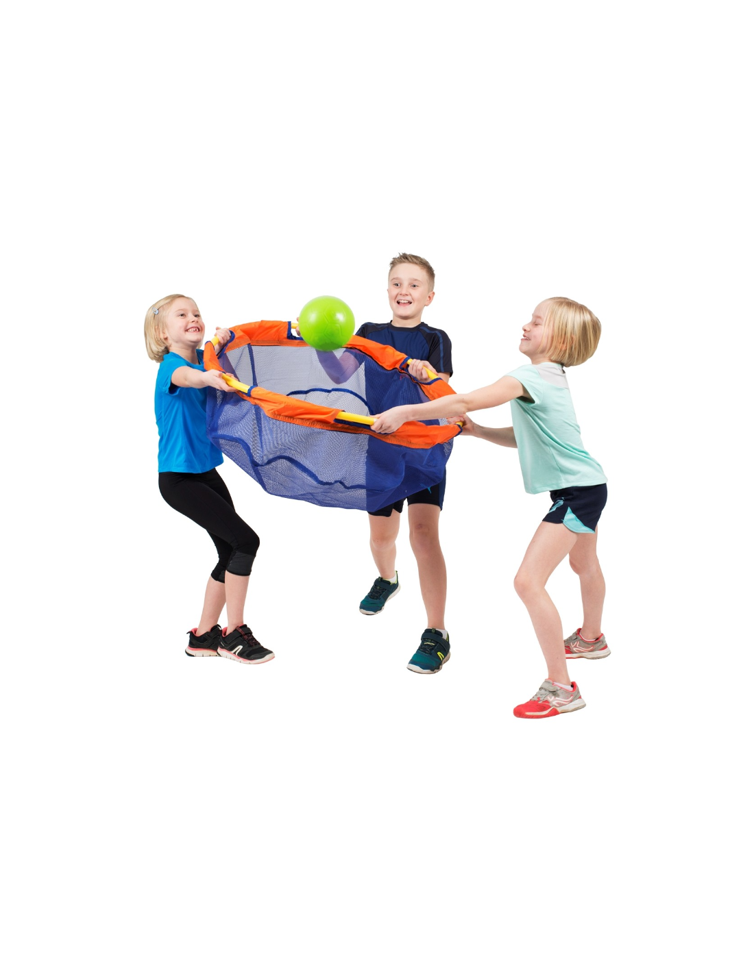 Para atrapar pelotas y otros objetos en una canasta de red cuyo objetivo es casi 2 veces mayor que el de una portería de baloncesto tradicional. Cada cesta está unida a un aro con cierres de velcro.