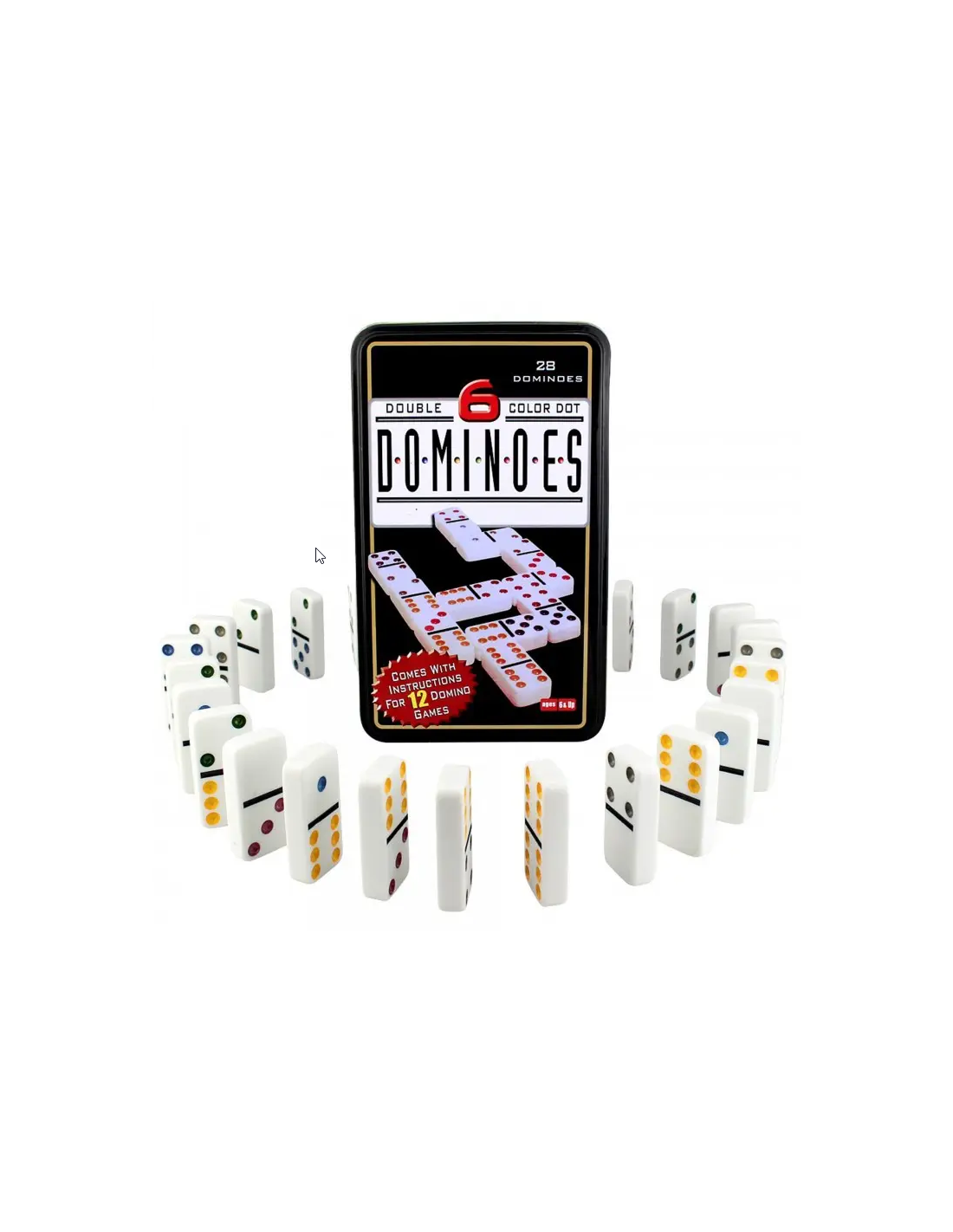 Juego de dominó de color doble 12 en caja de metal, 91 piezas con puntos de colores.