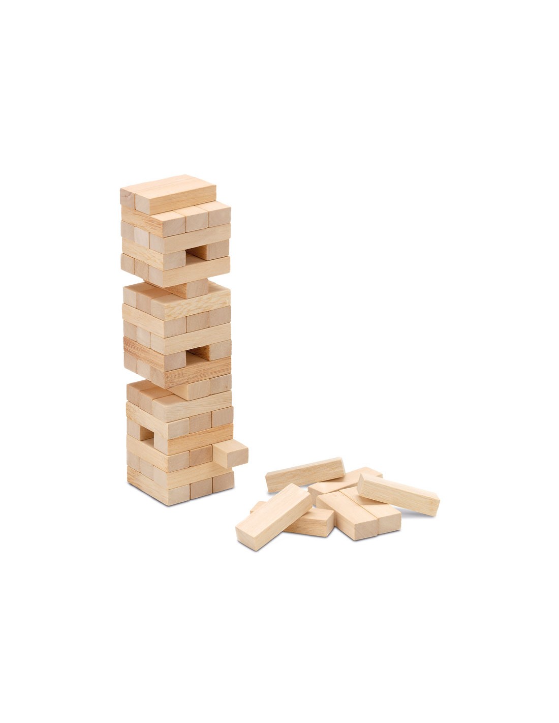 Juego de la torre fabricado íntegramente en madera. Coge bloques que sean innecesarios para la estabilidad de la torre y colócalos arriba para hacerla lo más alta que puedas, pero ojo, porque si se te cae pierdes.