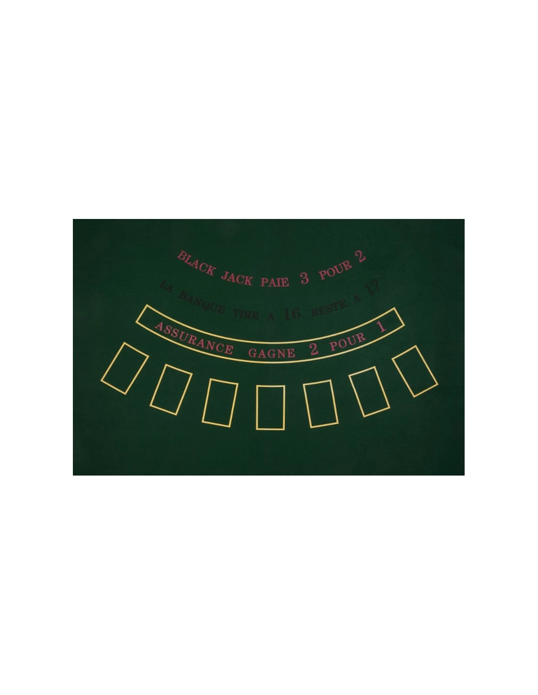 Alfombra black jack hecha de fieltro verde. Dimensiones: 130 x 90 cm. Espesor paño: 3mm.