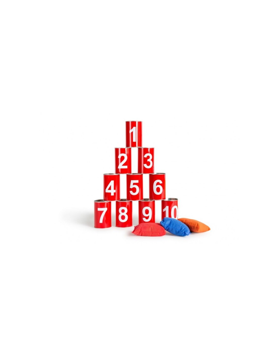 Las latas son de metal y de un diseño cuidado, con números del 1 al 10. 3 saquitos de arena hacen de pelotas con los que debes tirar las 10 latas. Medida de las latas: 6 cm