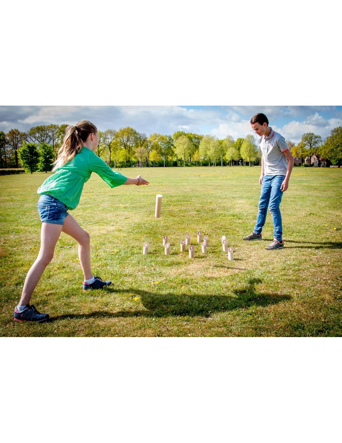 El mölkky es un juego de puntería, de origen finlandés, que se juega en el exterior con piezas de madera cilíndricas.