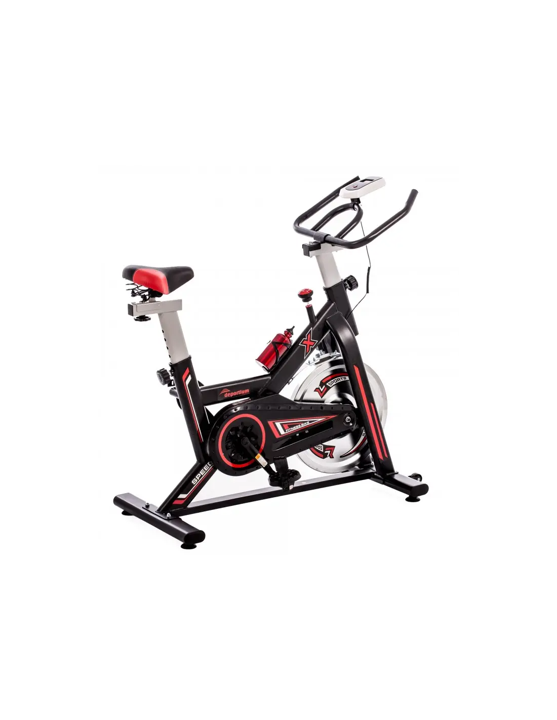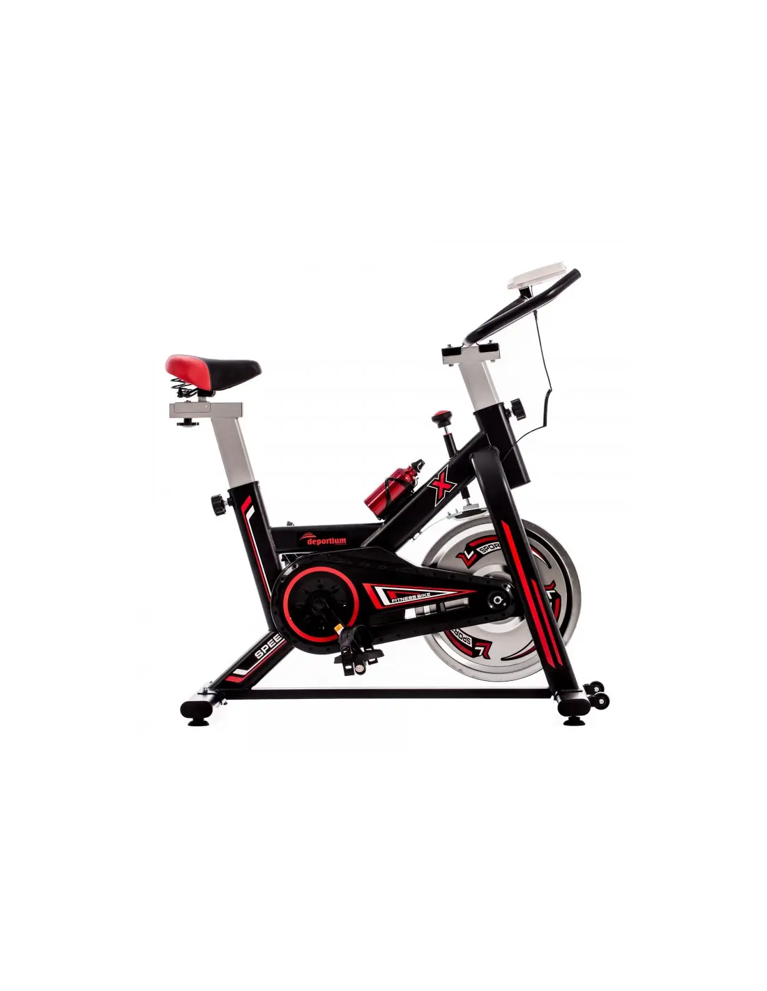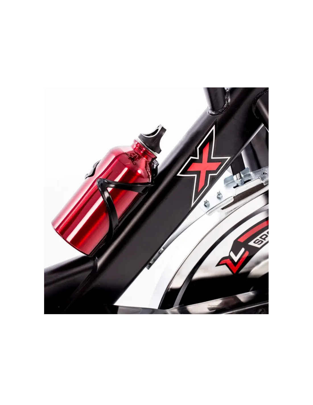 Apta para todos los niveles de entrenamiento. Fabricada en acero. Volante de inercia de 6kgs. Manillar regulable en altura y sillín regulable en altura y proximidad. Incluye botellín y portabotellas. Sistema de regulación de la intensidad por fricción. Medidas listo para usar: 103x59x113-102 cm. Peso: 26kg.