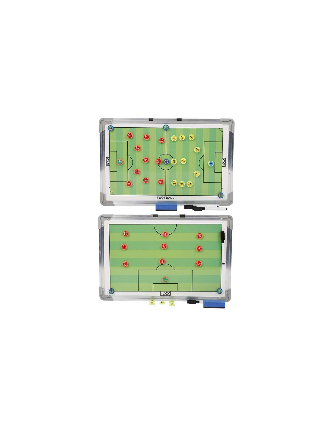 Pizarra de doble cara, hecha de un cuerpo de aluminio forrada con una superficie magnética. Incluye fichas magnéticas con número.