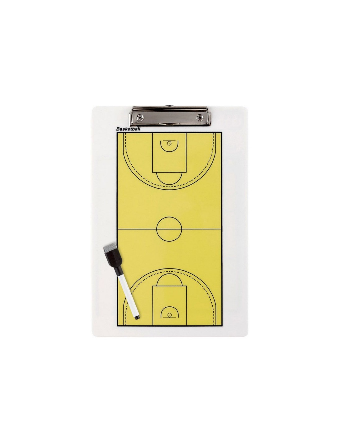Con rotulador veleda, pizarra de dos caras/ reversible. En el anverso tiene el campo entero, en el reverso medio campo. Se puede utilizar el rotulador veleda en ambas caras.