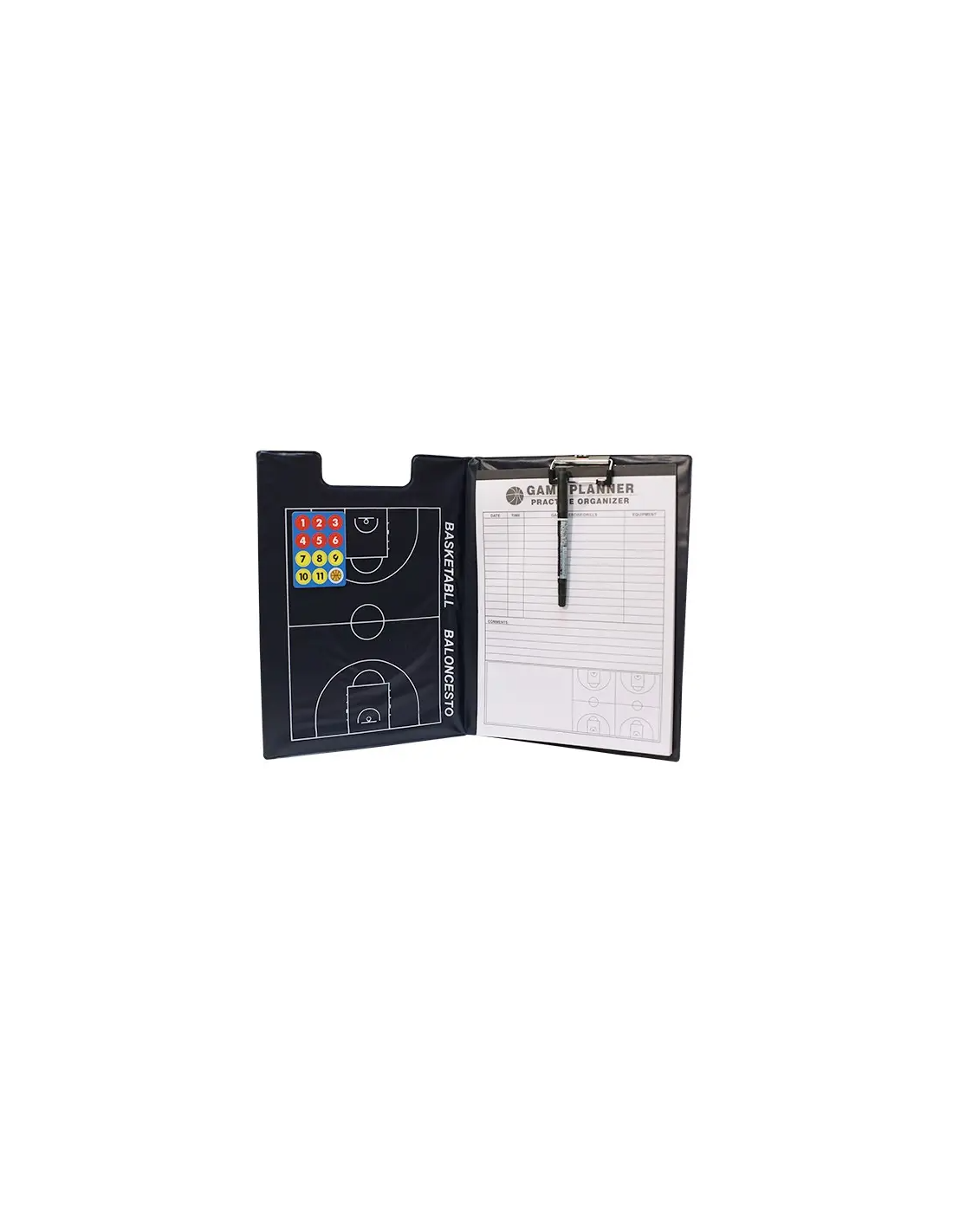 Carpeta magnética baloncesto. Tamaño A4, con ficha magnéticas y soporte/clip con hojas.
