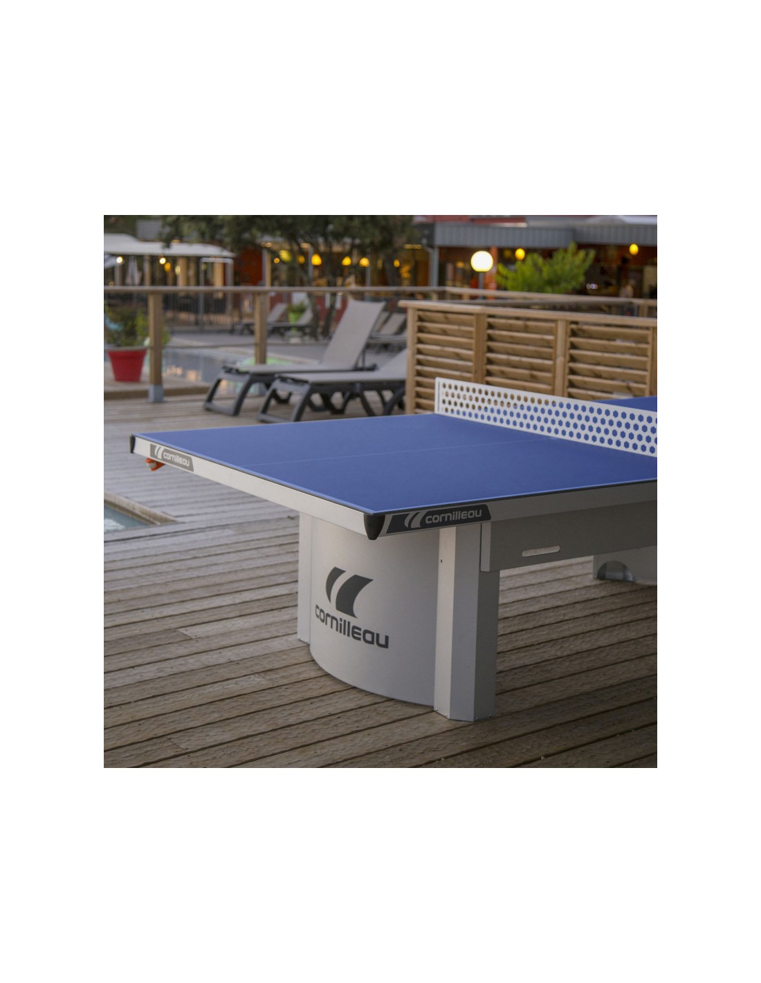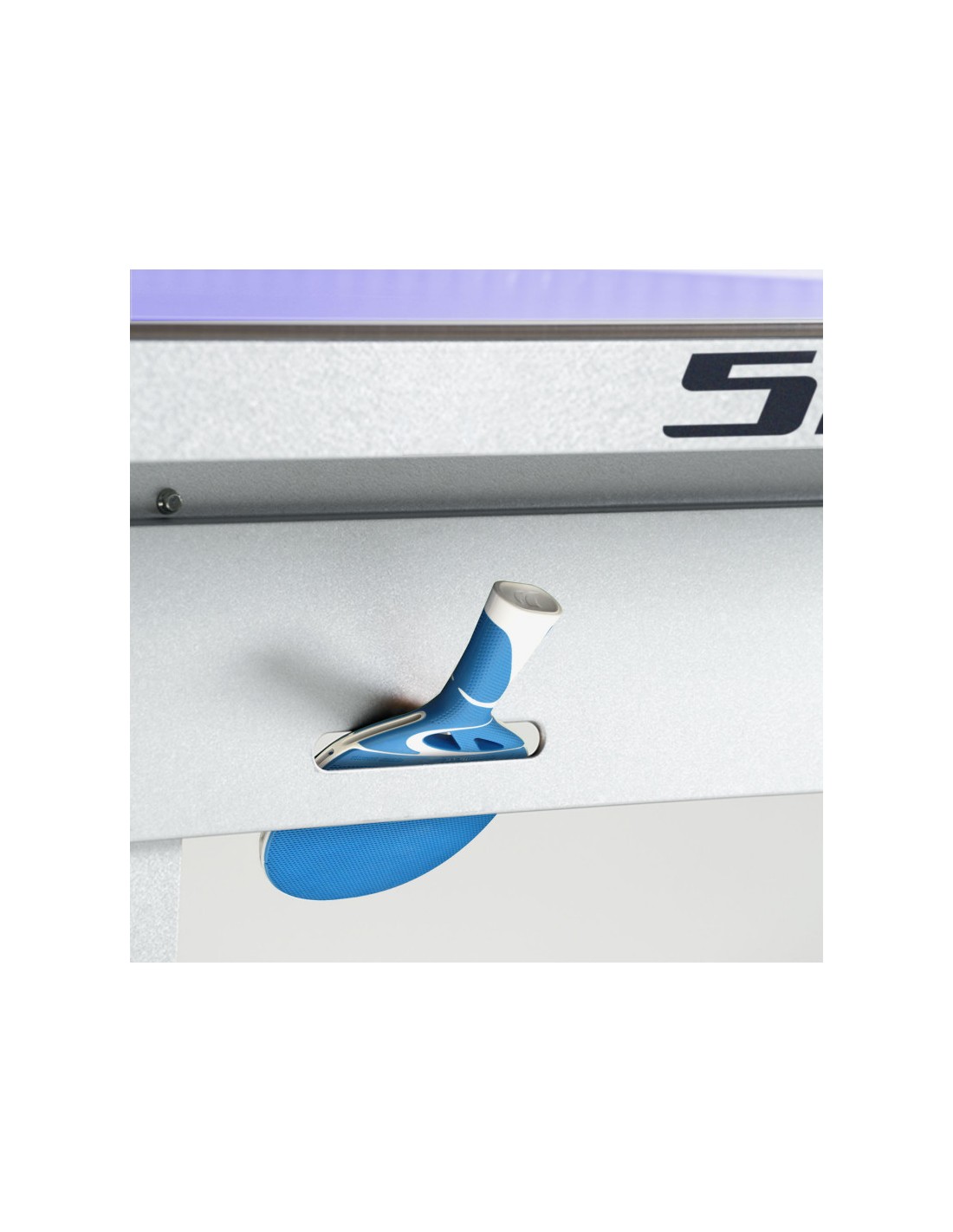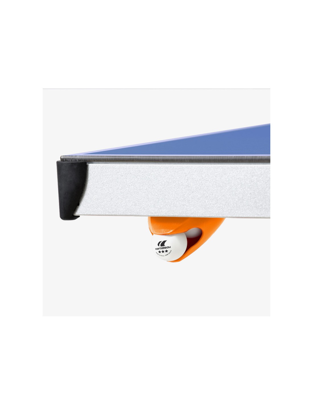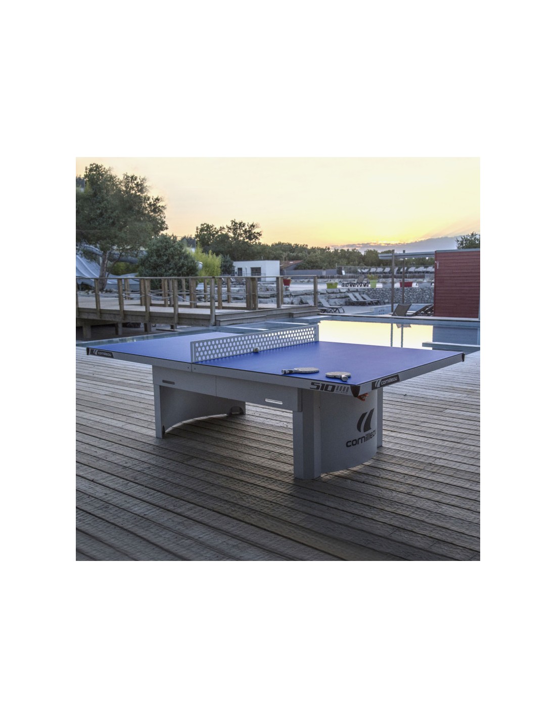 La mesa 510 M es un modelo estático para estar al aire libre. Su estructura de 100% acero (aluzinc) y su alta densidad, con un tablero laminado sólido, hace que pueda soportar cualquier golpe, ya sean de raquetas o del mal tiempo.