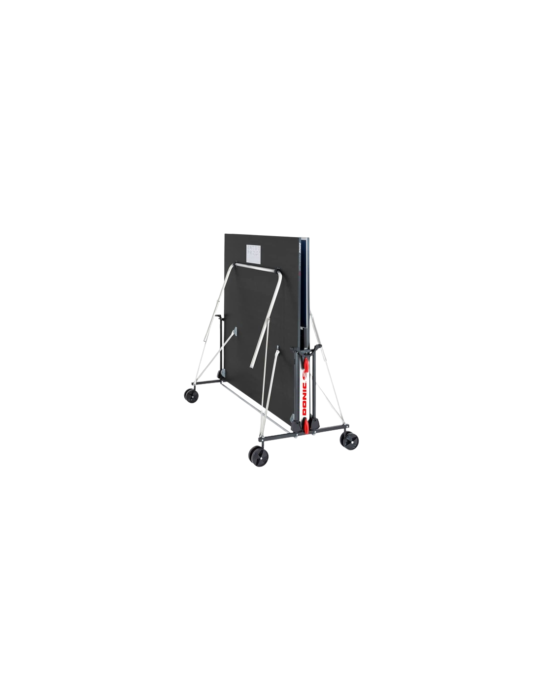 Superficie de 19mm sin marco, malla integrada. Ruedas dobles de 125mm. Sistema de seguridad de mango rotativo. Perfil de tubo redondo de acero 25mm, con recubrimiento en polvo. Dimensiones de la posición de juego: 274 x 152,5 x 76 cm.
