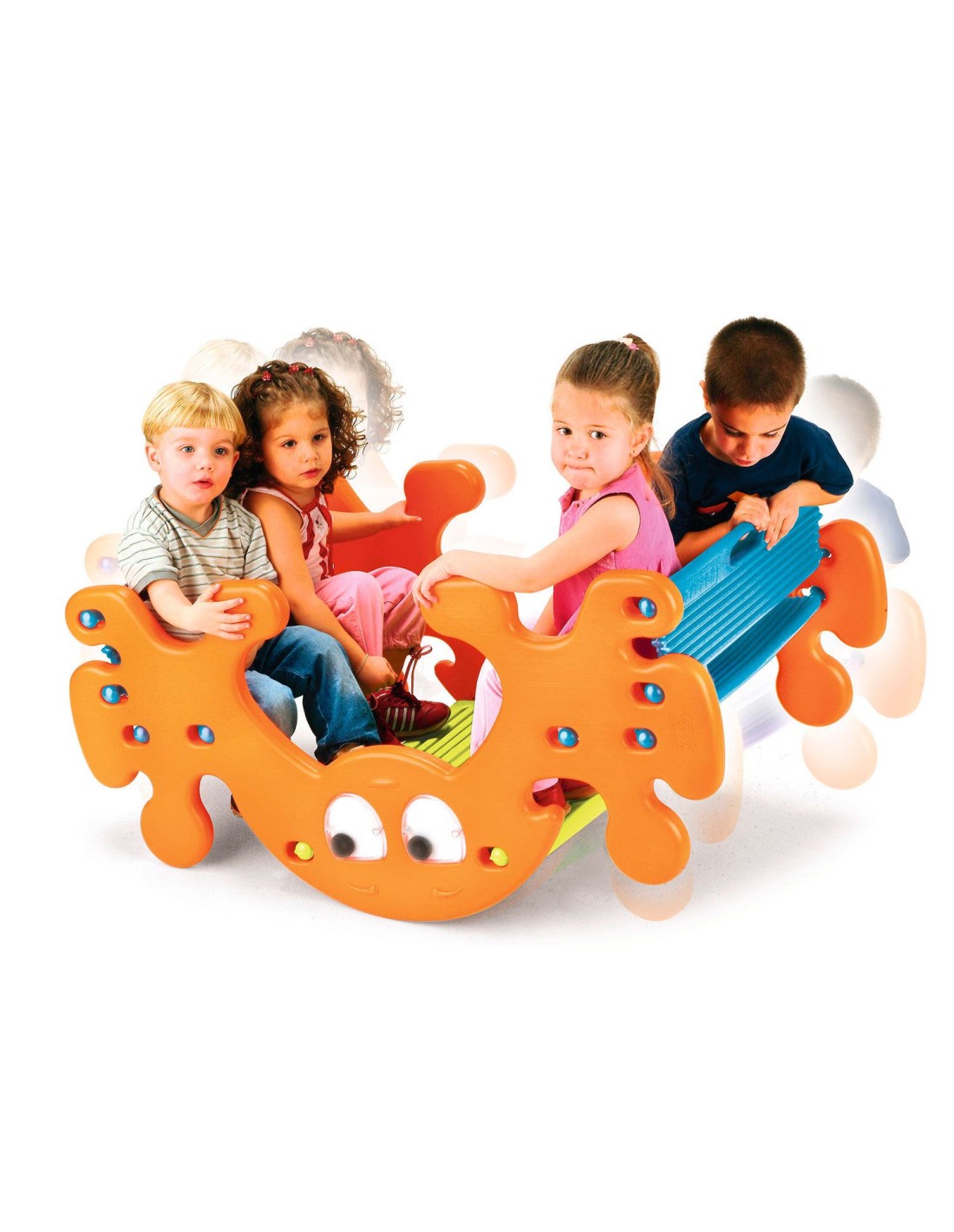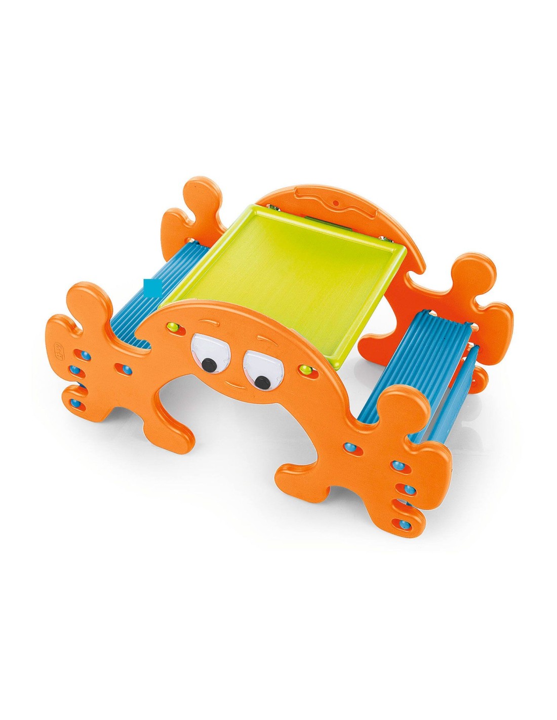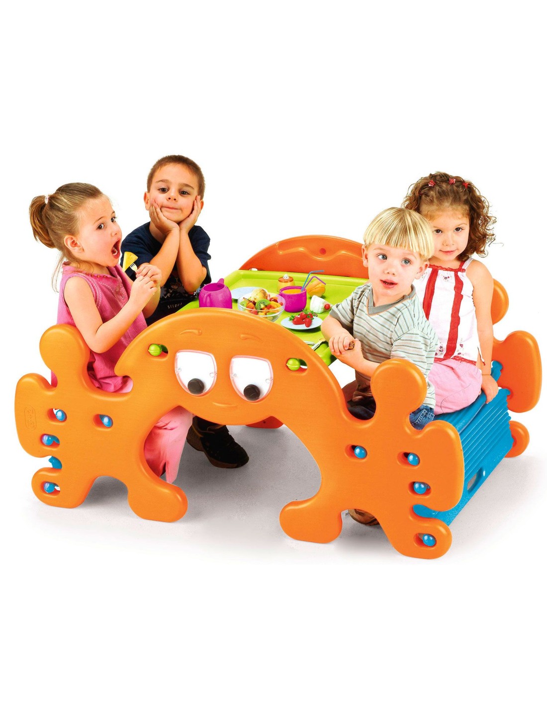 Mesa picnic con bancos para sentarse y dándole la vuelta, pero que también se convierte en un divertido balancín. Capacidad para 4 niños y de fácil montaje. No necesita herramientas. Accesorios no incluidos. Colores luminosos, resistentes a la luz solar y a cambios de temperatura.