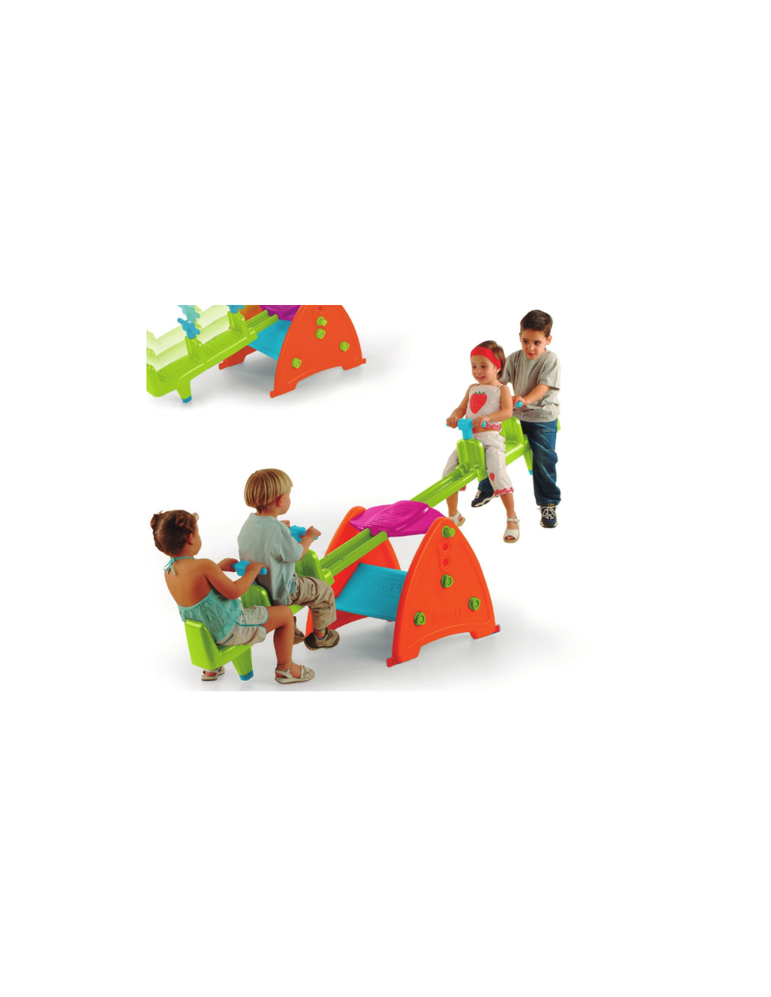 Divertido sube y baja que se puede regular en 3 posiciones para adaptarse a la altura de los niños. Pueden jugar hasta 4 niños. Indicado de 3 hasta 8 años. Medidas: 60 (largo) x 234 (ancho) x 97 (altura) CM.