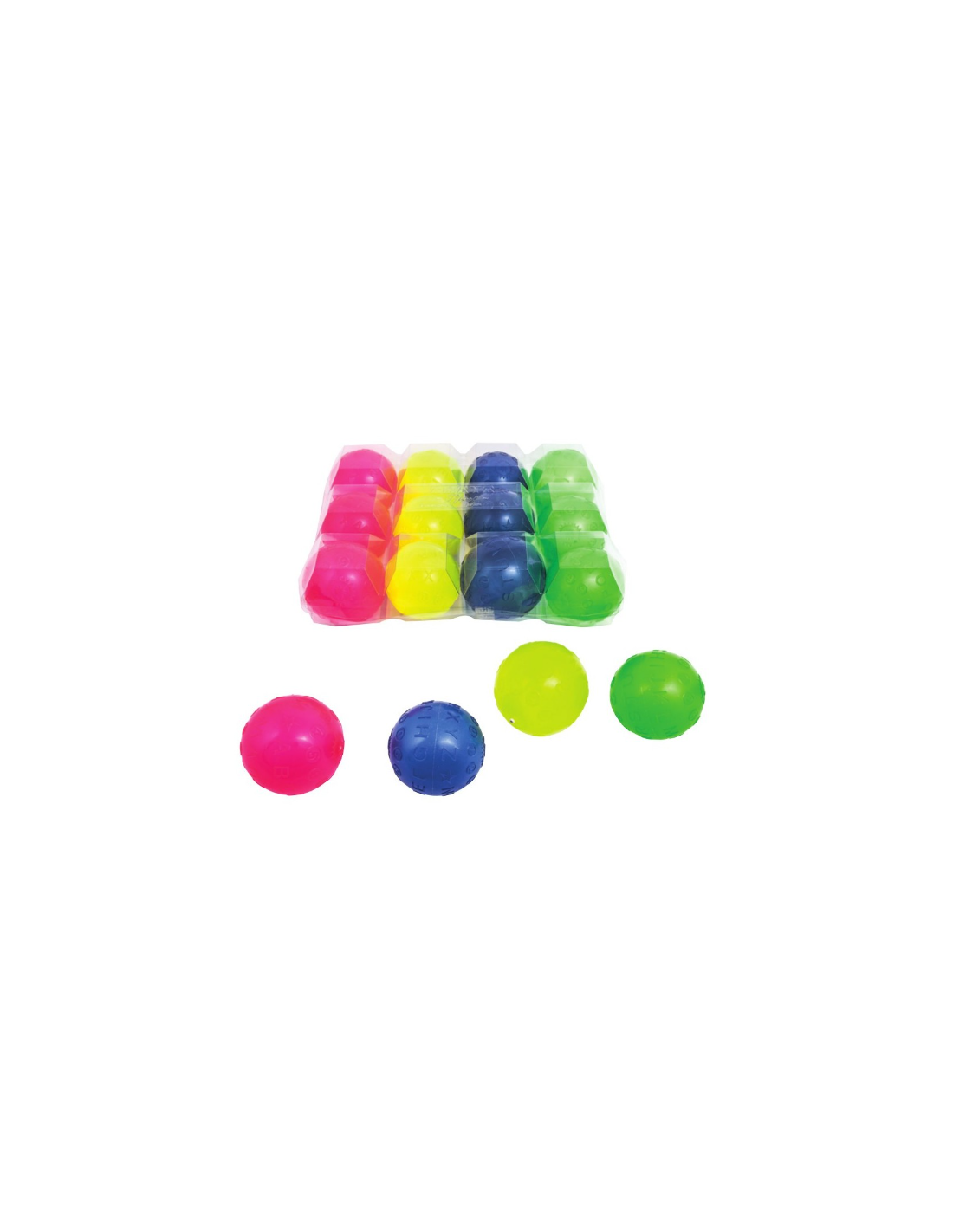 Colorida pelota fabricada en plástico transparente. Con 10cm de diámetro y 44cm de circunferencia.