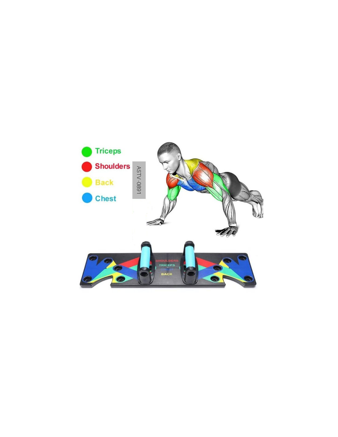 Sistema innovador de entrenamiento con código de color que fortalece y da forma a todo tu tren superior (pecho, hombros, espalda y brazos). Incluye un par de asas. Medidas: 60x18x1,5cm. Medidas del asa: 17x9x6,5cm.