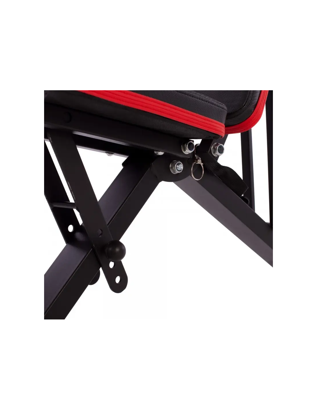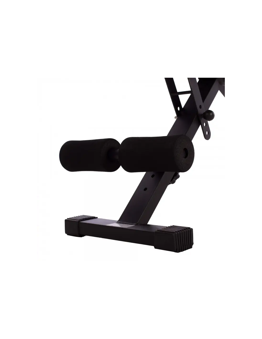 Cuenta con un diseño estable y fácil de utilizar. Permite el trabajo de diferentes grupos musculares. Se puede plegar para transportarlo y almacenarlo cómodamente. Dimensión total: 120 cm. Base: 33 x 6 cm. Respaldo: 76 x 28 cm. Regulable en 6 alturas. Asiento: 36 x 33 cm. Regulable en 4 posiciones. Cuenta con sujeción de pies fabricado en foam.