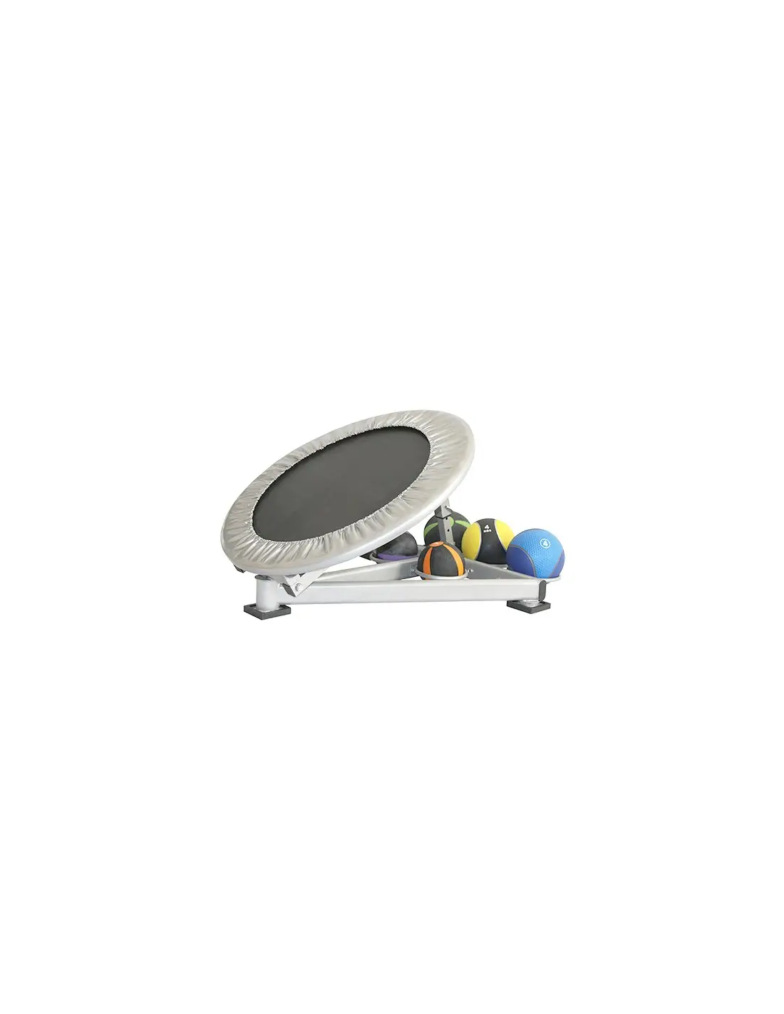 El rebounder combina un trampolín con una base antideslizante para realizar ejercicios de retorno con los balones medicinales.