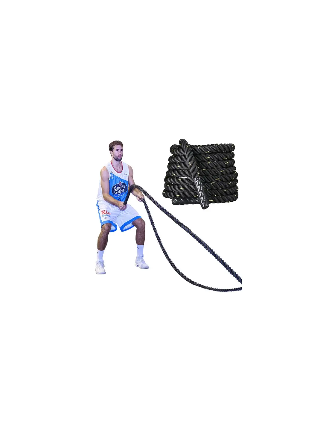 Material sintético trenzado. Soporta muy bien la abrasión. Diámetro: 38mm. Con gancho para facilitar su enganche