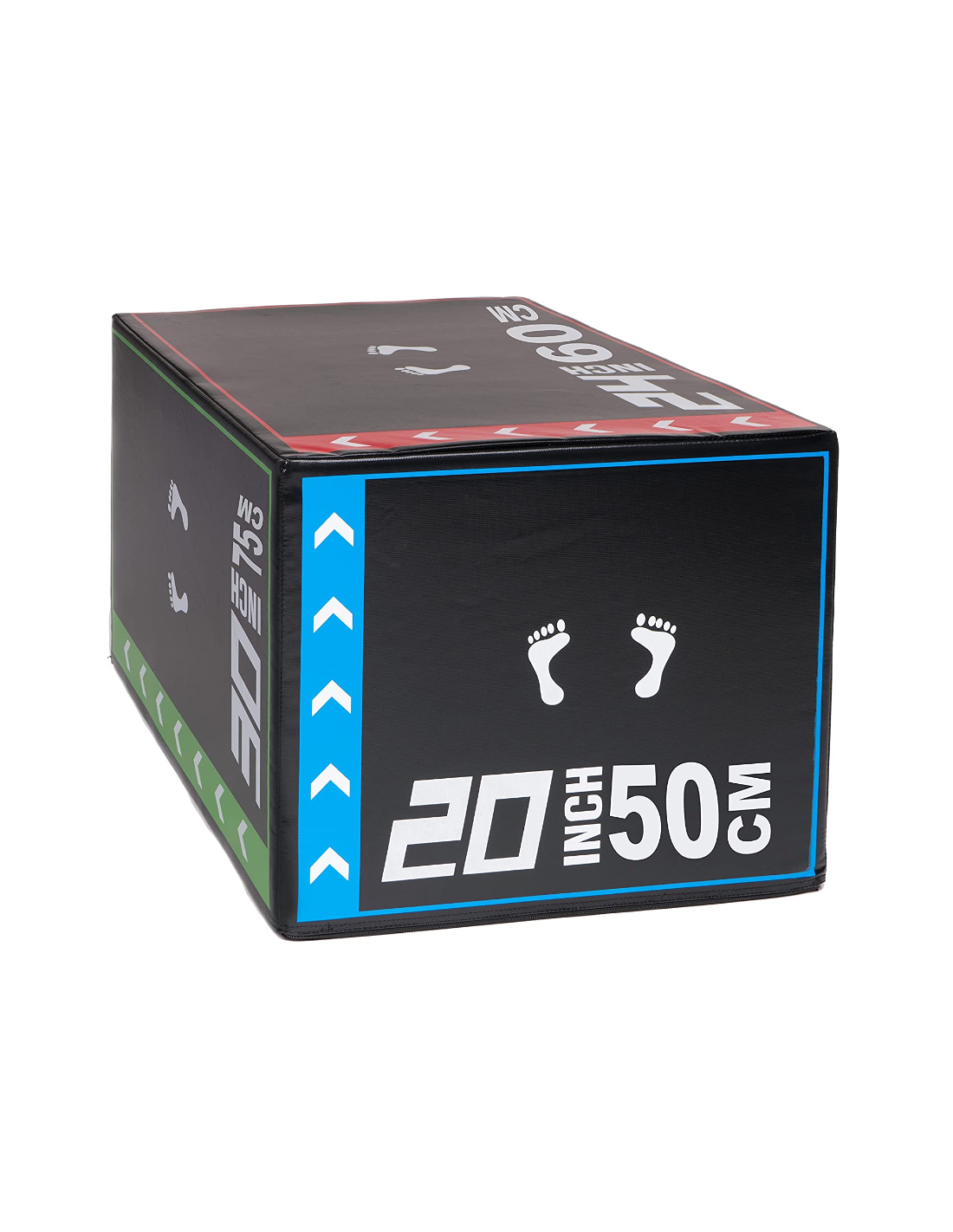 Cajón pliométrico ajustable, está fabricado en foam y proporciona una solución sencilla para disponer de diferentes alturas en un solo producto. Dependiendo del lado en que se posicione, permite tres alturas diferentes; 50, 60 y 75 cm.