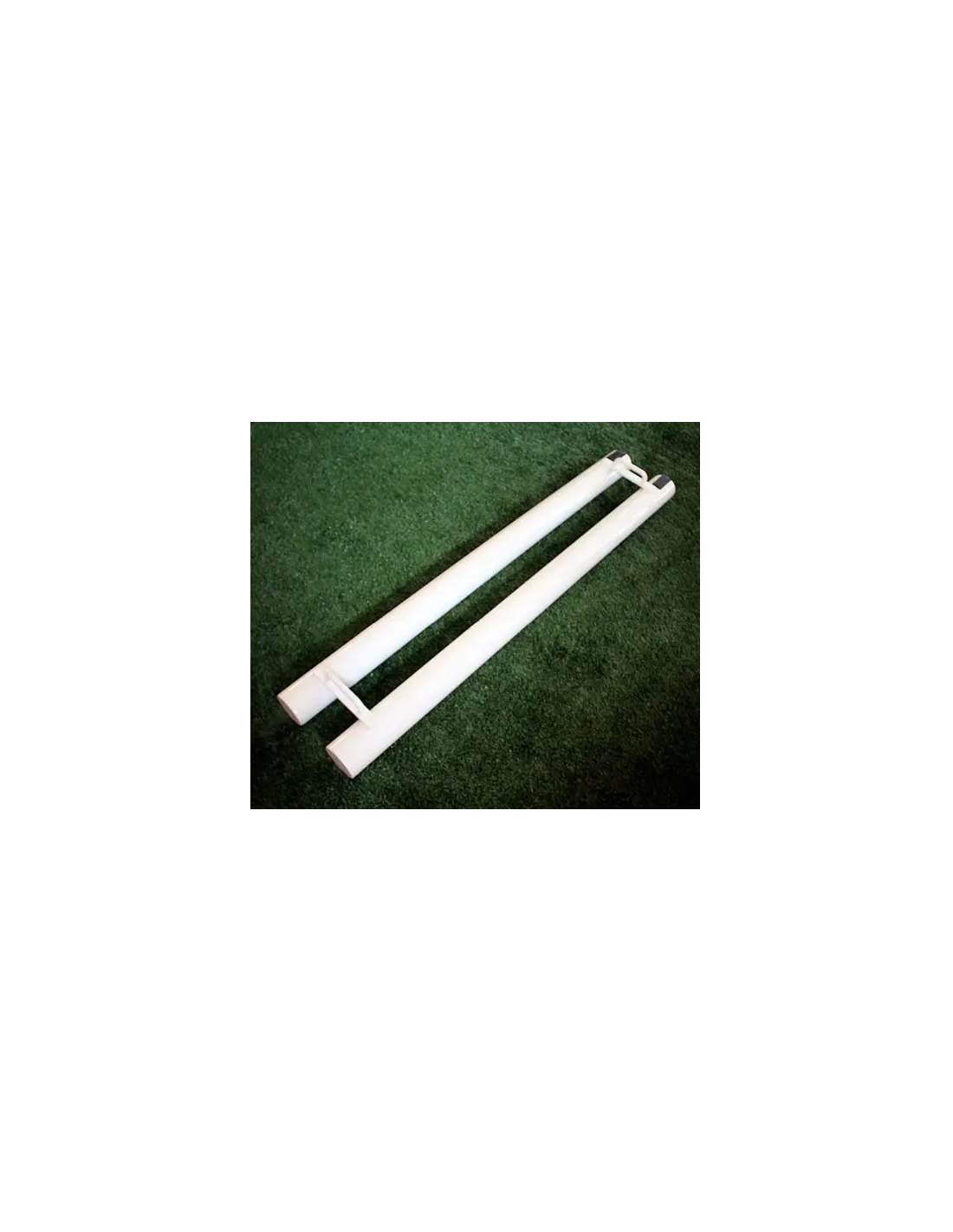 Para colocar en la parte posterior de la base de las porterías trasladables. Compuesto cada uno de los contrapesos por 2 tubos de acero sección redonda de 100mm y 1,50 m. de largo. Para rellenar con arena u hormigón, con lo que puede llegar a tener un peso hasta 90/100 kg. Los tubos disponen de su tapón que posibilitan un llenado y vaciado de los mismos. Se unen mediante dos asas que se adaptan a las bases de las porterías (se recomienda dos contrapesos por portería) También se pueden adaptar a porterías de fútbol sala y balonmano.