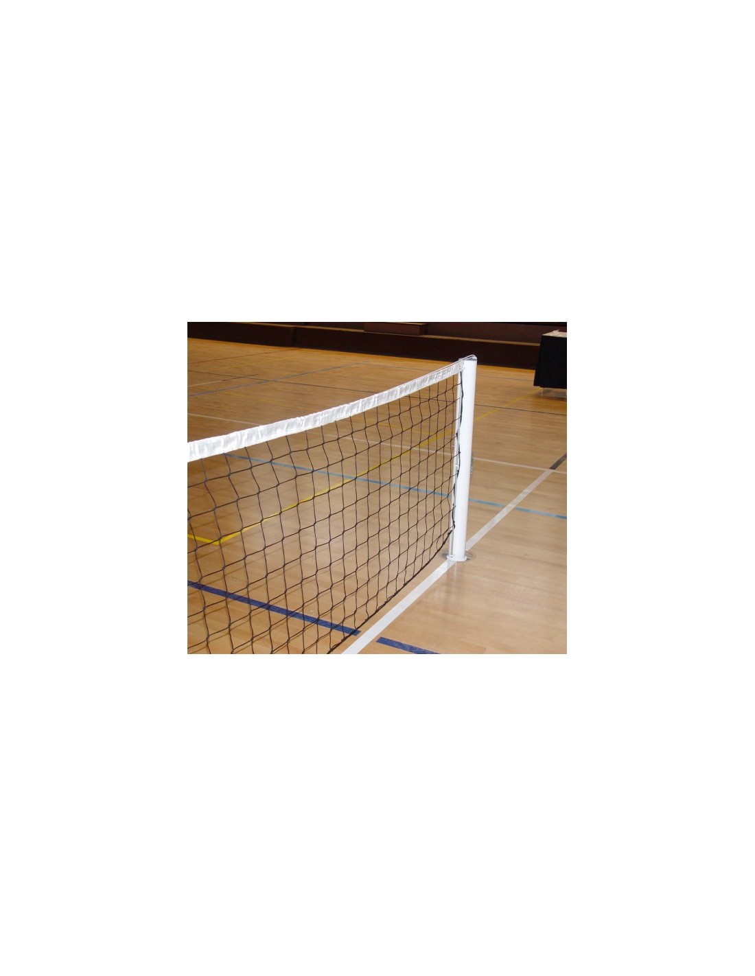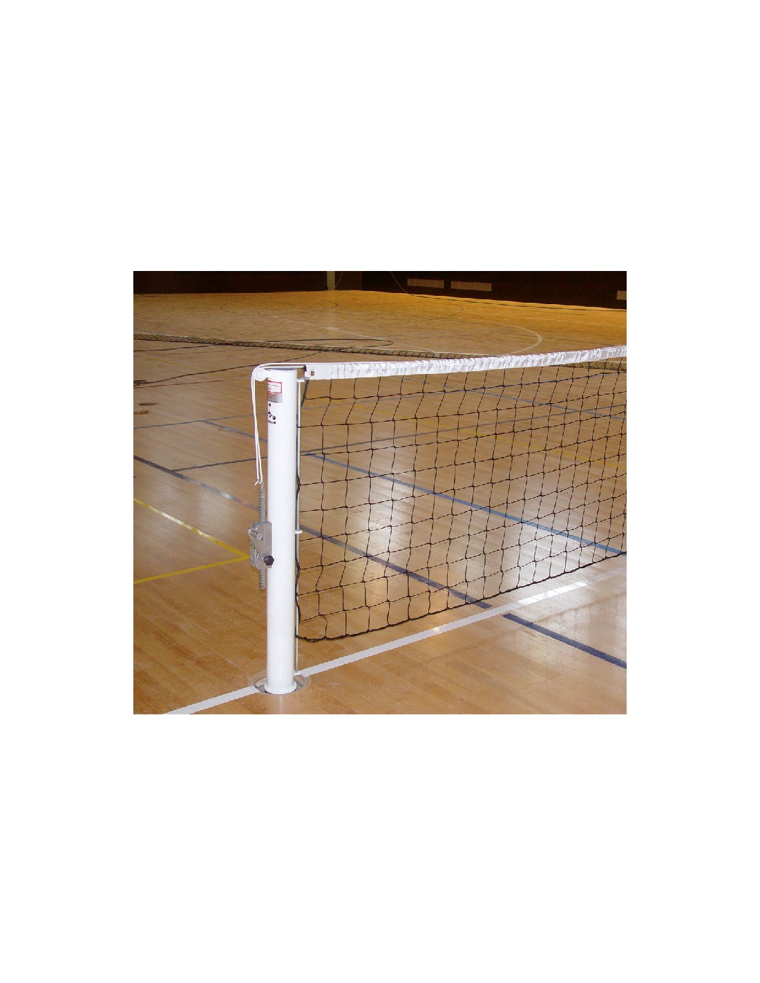 Postes fijos de Tenis fabricados según norma EN 1510: 2004. Con un anclaje metálico para fijación al pavimento, dispone de enganches laterales para la sujeción de la red. La regulación de la red es por sistema de tensión por tracción rectilínea.