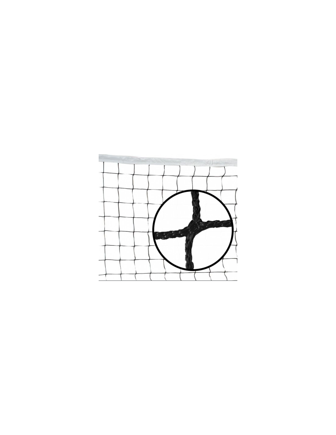 Propilotileno, 4mm. Norma EN-1271. Red de Voleibol con refuerzos para mayor duración. Enganches horizontales de nylon, mucho más resistentes que los habituales, fijados en los laterales de la malla.
