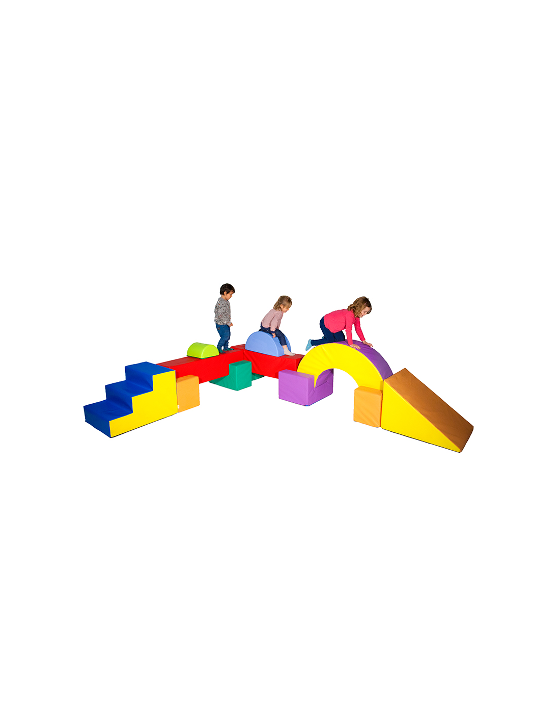 Los conjuntos de psicomotricidad son productos especializados para escuelas y centros infantiles, pensados para fortalecer el desarrollo de los niños en gimnasia y psicomotricidad. Estos productos cuentan con pequeñas alturas, tactos suaves y materiales totalmente aptos para mordeduras, así como antibacterianos. Cumplen con todas las normativas europeas de seguridad y protección.