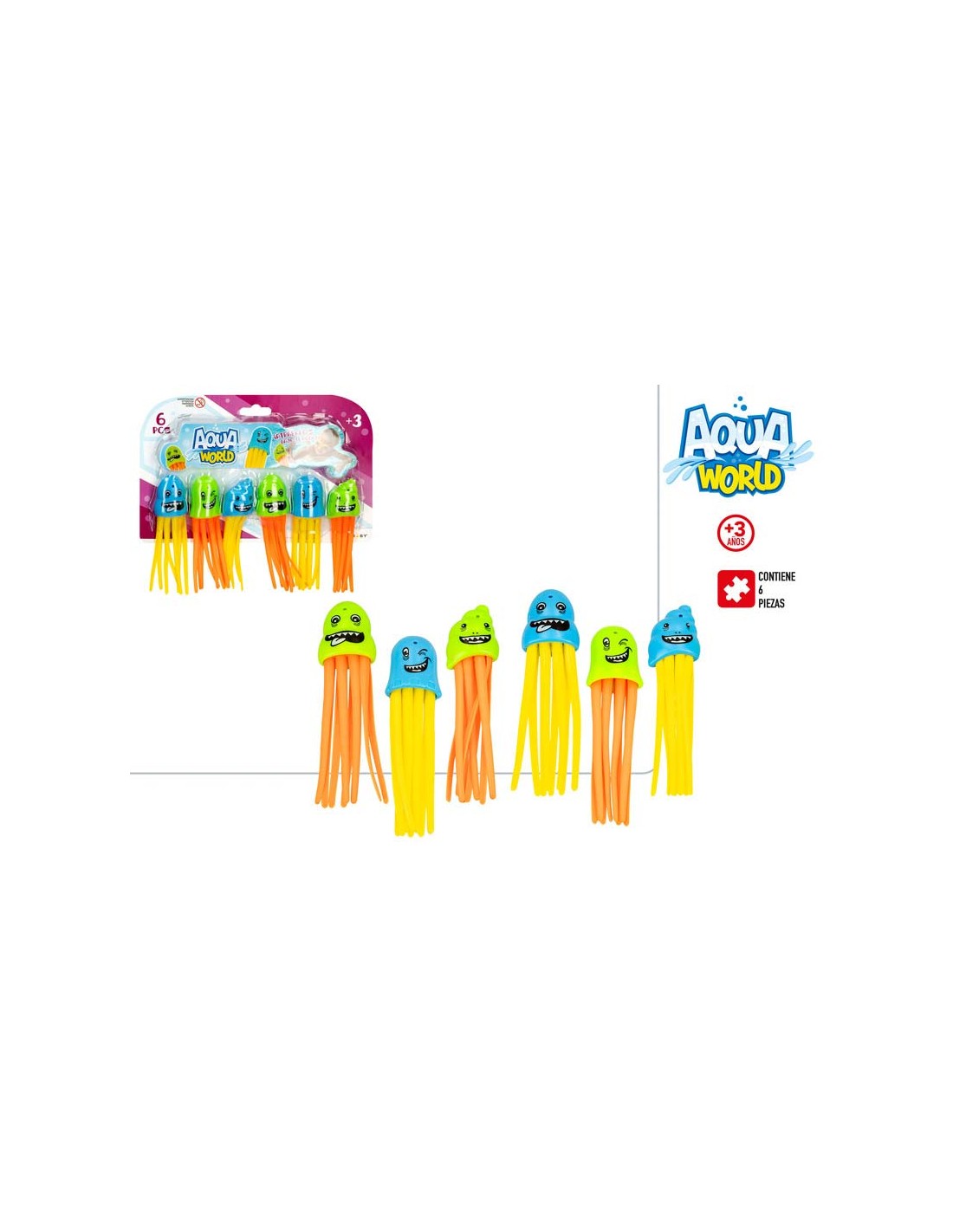 Contiene 6 piezas. A partir de 3 años. Se hunden hasta el suelo de la piscina, quedando patas arriba.