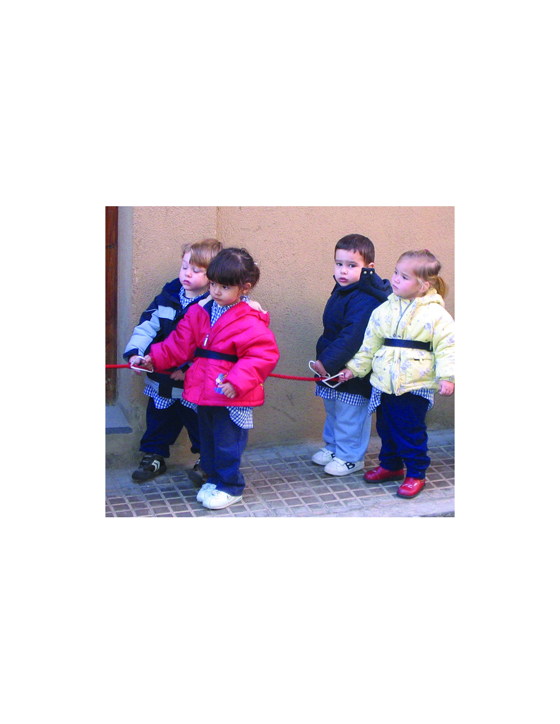 Cuerda de transporte con cinturón de seguridad para cada niño con asas plastificadas para excursiones y salidas.