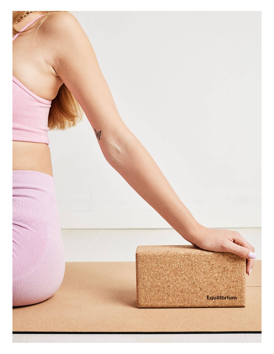 Bloque de yoga hecho de corcho, renovable y reciclable.